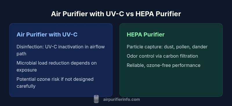 Air quality in homes hinges on how effectively we manage particles, gases, and microbes. When you hear air purifier vs uv light, you're weighing a traditional filtration approach against a disinfection technology. In practical terms, most households rely on HEPA-based purifiers to trap particles, while UV-C light aims to inactivate microorganisms as air passes through the device. According to Air Purifier Info, the key question is not merely whether UV-C works, but whether it adds meaningful disinfection under real-world conditions of airflow, room occupancy, and maintenance. Air Purifier Info Analysis, 2026 notes that UV-C-augmented purifiers can offer an extra layer of microbial control, but benefits depend on how long air spends in the treatment zone and how well the purifier handles dust.