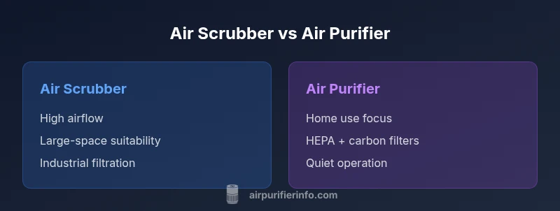 Air scrubbers and air purifiers serve different indoor air quality needs. For most homeowners, the key distinction is scope: air scrubbers are designed for larger spaces and higher contaminant loads, while air purifiers target typical room air quality in homes. According to Air Purifier Info, start by matching your room size and pollutants to the device’s capabilities to decide which option fits best.