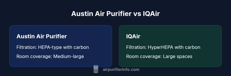 According to Air Purifier Info, homeowners evaluating austin air purifier vs iqair must consider filtration philosophy, maintenance burden, and total cost of ownership. The Air Purifier Info Team notes that Austin Air tends to emphasize robust, all-round filtration with durable construction and straightforward maintenance, making it a strong value choice for medium to large rooms where ongoing costs matter. IQAir, by contrast, focuses on premium filtration performance with HyperHEPA technology and high-grade carbon filtration, targeting households with severe sensitivities or VOC concerns. This fundamental split—robustness and value versus peak filtration—drives which model suits your living space best. In practice, most homes benefit from understanding not just the filter media, but the cadence of filter replacement and the energy footprint across seasons. As you weigh austin air purifier vs iqair, align your decision with your allergy profile, space, and willingness to invest in premium consumables, rather than assuming higher upfront cost equals better value across the board.