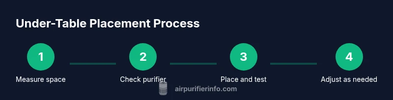 Yes, can you put an air purifier under a table is a common question for homeowners and renters seeking space-saving solutions. Under-table placement can be practical, but it hinges on several factors: the purifier’s dimensions, how the airflow is designed (intake and exhaust directions), and whether there is enough clearance for air to move freely. According to Air Purifier Info, the goal is to balance compact size with unobstructed airflow while avoiding heat sources or moisture. Start by checking the purifier’s manual to confirm under-table suitability, then compare its intake/outlet orientation with the space beneath your table. In many rooms, a compact to mid-sized purifier can perform well when placed near the edge rather than tucked into a cramped corner. The overarching aim is to keep the unit out of high-traffic zones while preserving easy access for maintenance. If space is too tight or airflow becomes restricted, consider alternative placements such as a nearby shelf or bench. Always be mindful of warranty guidance and avoid placing units in areas that could expose cords or components to damage.