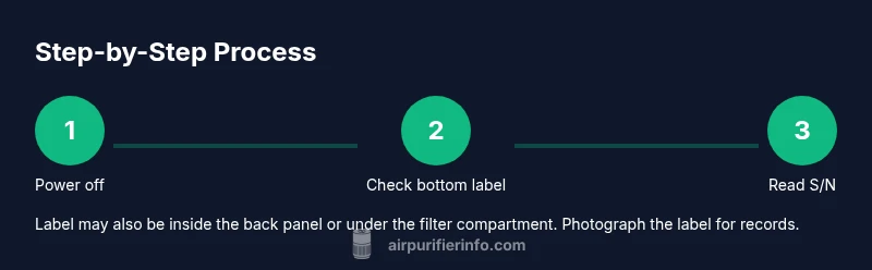 Most Coway air purifiers place the serial number on a label that is easy to read with good lighting. Primary spots include the bottom panel, the back of the unit, or inside the rear access door near the filter compartment. On some compact models, the label is tucked behind the front grille or under the removable filter. The label usually shows S/N or SN and may include the model number adjacent to the digits. If you’re unsure where to look, check the product manual’s 'Parts and Label' section or the Coway support site. When you locate the label, wipe away any dust with a dry microfiber cloth to read the digits clearly. Finally, photograph the label from a straight-on angle to preserve a record for future reference.