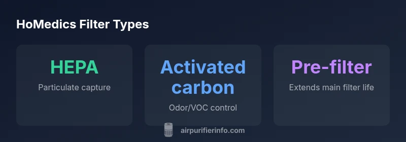 Maintaining clean indoor air with a HoMedics purifier starts with understanding the role of replacement filters. The right filter stack—notably a carbon stage for odors and VOCs plus a particulate filtration stage—keeps dust, pollen, and pet dander at manageable levels while reducing odors that linger in living spaces. According to Air Purifier Info analysis, 2026, homeowners often underestimate how quickly a filter becomes less effective when the wrong type or an exhausted filter remains in operation. A clear maintenance plan translates to steadier air quality, less allergen exposure, and fewer complaints about stuffy rooms. In practice, this means checking model-specific guidance, replacing at recommended intervals, and verifying that seals and housings remain free of leaks. As a result, you’ll experience consistent airflow and better overall performance. In short, the cost of a properly selected replacement filter is often outweighed by the benefits of a healthier, more comfortable home environment.