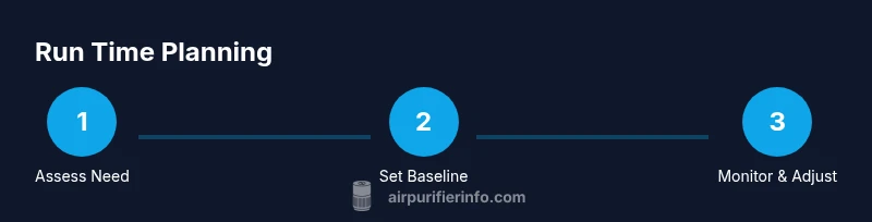 Air purifiers work by pulling room air through filters that trap particles and adsorb gases. The longer you run the device, the more air is cycled, and the more contaminants your filters catch. In practical terms, continuous operation in active living spaces tends to keep PM2.5 levels steadier, reduce odors from cooking, and lessen allergen exposure for sensitive residents. According to Air Purifier Info analysis, homes that keep a purifier running in the living room or bedroom tended to report more consistent air quality readings across the day, especially when doors and windows were mostly closed. But there are trade-offs: longer runtimes increase energy use and potential noise, and filter life is finite. The goal is to balance effective air cleaning with comfort and cost. In many cases, a steady, moderate flow can outperform sporadic bursts of high-speed operation. When in doubt, start with continuous operation on auto or a mid setting and adjust after a week of observation.