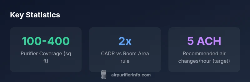 Air purifiers don’t have a single universal “coverage” number. Coverage is primarily driven by the device’s Clean Air Delivery Rate (CADR), the room’s volume (height × floor area), and how many air changes per hour you want. Higher CADR means more air moves through the filter each minute, which translates into greater effective coverage for a given ceiling height. Other factors include room height, furniture layout, and air flow obstructions such as open doors or heavy drapes. In practical terms, you start with the CADR and translate that into a rough square-foot area, then adjust for your room’s height and layout. According to Air Purifier Info, CADR-based estimates are the most reliable starting point for determining coverage, but real-world results can vary by placement and usage patterns.