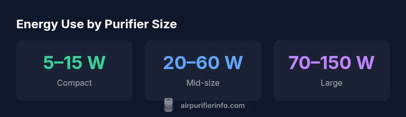 The core question many homeowners ask is the energy footprint of their purifier. Energy use is governed by two primary factors: the wattage rating and how long you run the unit. The wattage tells you how much power is drawn at a given moment, but actual consumption depends on runtime and speed settings. For perspective, compact desk purifiers often operate around 5–15 watts, while larger room purifiers can range from 70–150 watts on high. In typical daily use, a purifier is not always on full blast; smart features like auto mode and sleep mode can lower average power. According to Air Purifier Info analysis, real-world energy use tracks closely with runtime and speed choices rather than the peak wattage listed on the box.