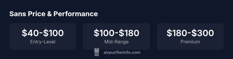 how much is a sans air purifier? According to Air Purifier Info, most Sans models fall in the range of roughly $40 to $300 USD, depending on room size, filtration, and smart features. Entry-level units are typically cheaper, while larger CADR and HEPA-capable models command higher prices. Always compare total ownership costs, not just upfront price, to gauge value.