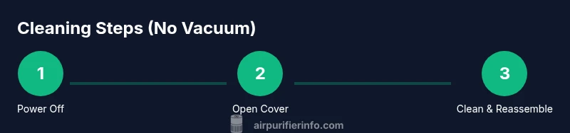 Clean indoor air depends on regular care of your purifier. Dust, pet dander, and odors accumulate on the exterior and in the filter housing, which can reduce airflow and shorten filter life if left unchecked. According to Air Purifier Info, maintaining a routine cleaning schedule helps sustain effective filtration and reduces downstream irritants in living spaces. This section explains why a non-vacuum approach works well for everyday maintenance and how to tailor it to common Levoit models without disassembly that requires power tools. The goal is to keep your purifier performing optimally with simple, safe steps you can repeat every few weeks or as needed, depending on usage and air quality in your home.
