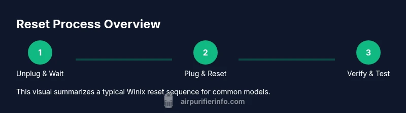 Resetting a Winix air purifier is often the quickest way to clear minor fault indicators and return the device to normal operation after events like power glitches, filter changes, or sensor glitches. The Air Purifier Info Team notes that resets can resolve ghost error codes without replacing parts. For homeowners and renters, this simple step can save time and keep indoor air quality steady. Before you reset, recognize that some issues require more than a reset, such as dirty filters or blocked air intakes; a reset will not fix physical obstructions. If you see an error code flash, note the exact pattern and check the manual for its meaning. Air Purifier Info emphasizes safety: unplug before inspecting any internal components, and never insert objects into the intake.