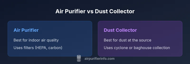 In everyday living spaces, the phrase is an air purifier the same as a dust collector is a common sticking point. According to Air Purifier Info, most homeowners want a simple, one-device solution that quietly improves air quality. However, the physics and intended use cases differ substantially. An air purifier targets the breathing zone in occupied rooms, filtering out dust, pollen, and other particulates as people go about daily life. A dust collector, by contrast, is engineered to capture a large fraction of dust generated by specific activities—sanding, grinding, cutting—in a workshop or industrial setting. The goal of this distinction is not to suggest one is superior in every context but to align the right tool with the task at hand. The keyword you used—is an air purifier the same as a dust collector—reappears here as a reminder of their distinct purposes, even as both devices contribute to cleaner air at home or in a workspace.