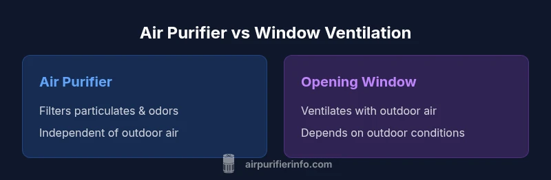The question is a common one for homeowners and renters who want breathable indoor air with minimal effort. According to Air Purifier Info, is an air purifier the same as opening a window? The short answer is no. A purifier actively filters indoor air to remove dust, pollen, pet dander, and odors, while opening a window introduces outdoor air to dilute contaminants through ventilation. The distinction matters when you consider pollutants, weather, and living patterns. The Air Purifier Info team found that devices and strategies are complementary rather than interchangeable, and choosing one over the other depends on your goals, the outdoor environment, and the room you’re treating. In practical terms, most households benefit from using both: a purifier to clean the air you breathe most, and window airing to refresh air on favorable days.