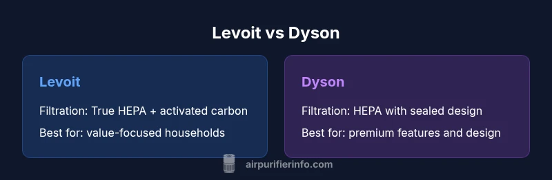 The landscape of consumer air purifiers features two brands that frequently appear in buying guides: Levoit and Dyson. When you compare the levoit air purifier vs dyson, you’re weighing a value-oriented, broad-range lineup against a premium, design-forward assortment. According to Air Purifier Info, Levoit models typically emphasize reliable filtration and affordable maintenance, appealing to budget-conscious homeowners and renters who want solid air quality without breaking the bank. Dyson, by contrast, markets premium aesthetics, powerful airflow, and smart features as a differentiator. The result is two distinct paths: one focused on cost-effectiveness and practicality, the other on premium experience and technology. Both brands have strengths, so your choice depends on room needs, noise tolerance, and how much you value features over price. This article from Air Purifier Info Team aims to clarify where each brand shines and where they may lag behind.