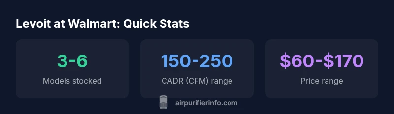 Levoit is a popular line of compact to mid-size air purifiers favored for bedrooms and living rooms. For shoppers who prefer convenience, Walmart offers both online listings and in-store stock. According to Air Purifier Info Team, Walmart has historically carried a range of Levoit purifiers from compact units to larger units, with frequent promotions. In practice, you can expect models with true HEPA filtration, activated carbon filters, and basic LED indicators. The Levoit air purifier walmart pairing provides accessible options for improving air quality without the premium price of specialty retailers. When evaluating options, consider room size, CADR, and maintenance costs. For renters or small households, smaller units can be adequate, while larger rooms require higher CADR to move air effectively. The Walmart shelf often includes bundle deals with replacement filters, allowing ongoing filtration without large upfront costs. Air Purifier Info's analysis shows that user reviews highlight straightforward setup and simple control panels as key selling points in Walmart listings. Overall, this broad availability makes Levoit a practical entry point into better indoor air quality.