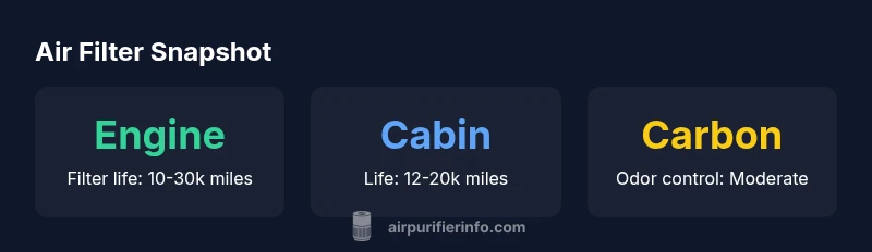 Engine air filters guard the intake air for the engine, helping performance and efficiency. Cabin filters protect the air you breathe inside the car, with carbon versions offering odor control. Both should be considered when maintaining a Civic’s air quality.