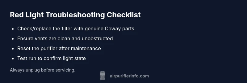 Discover why a Coway air purifier turns red and follow a clear, step-by-step troubleshooting plan to restore safe operation, with maintenance tips and safe practices from Air Purifier Info.
