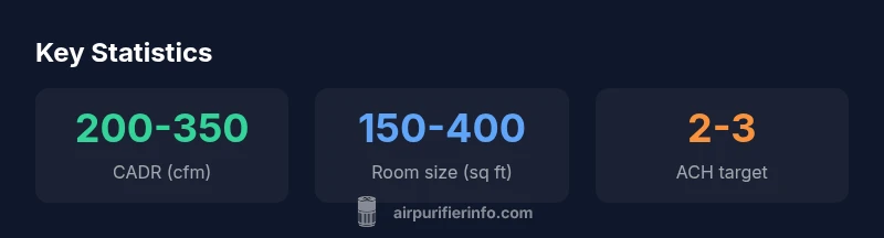 For a typical living room (150–400 sq ft), target a CADR of about 200–350 cfm to achieve roughly 2–3 air changes per hour. This translates to units that cover 250–600 sq ft depending on ceiling height and layout. According to Air Purifier Info, choose a model sized for your room size and balance noise and energy use.