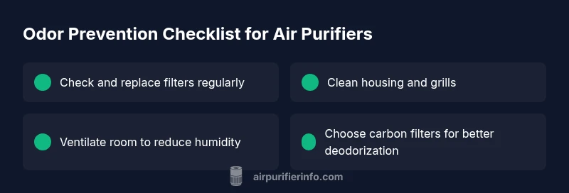 If your air purifier smells, the most likely causes are a clogged filter, mold, or a stale housing. According to Air Purifier Info, start with simple checks: replace the pre-filter, wipe the exterior, and run new filters. If the odor persists, move to deeper diagnostics and safer cleaning steps for faster relief.