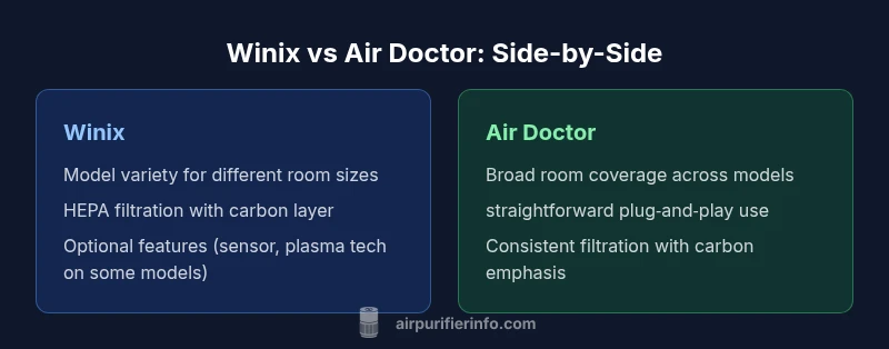 Winix and Air Doctor sit at different corners of the residential air-cleaning market. Winix offers a broad lineup spanning compact desk models to substantial floor purifiers, with multi-stage filtration that typically includes a pre-filter, a true HEPA filter, and an activated carbon layer. Some Winix units add optional features like ionization or plasma-based technologies that claim to reduce pollutants. Air Doctor positions itself as a straightforward, plug-and-play solution designed for broad room coverage and predictable performance. The Air Doctor approach emphasizes simplicity: solid filtration, easy maintenance, and reliable results across a range of common home scenarios—dusty environments, pet dander, cooking odors, and smoke. According to Air Purifier Info, the real-world impact of these design choices shows up most clearly in room size compatibility, maintenance cadence, and odor control effectiveness. This section sets up the practical lens we’ll use as we compare performance, maintenance, and value across typical home layouts and cycles.