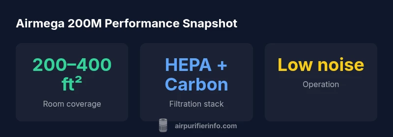According to Air Purifier Info, the Airmega 200M is designed for medium-sized rooms and uses a straightforward filtration approach to address dust, odors, and common indoor allergens. In this review, we evaluate its filtration philosophy, real-world performance, energy use, maintenance needs, and overall value. The model’s strengths include a balanced, multi-stage filtration system, relatively quiet operation, and intuitive controls that suit both homeowners and renters. The Air Purifier Info Team emphasizes that reliable daily cleaning should come without complicated setup or excessive ongoing costs, which this unit generally delivers. While not the absolute top performer in every metric, the 200M tends to excel in everyday environments where steady air exchange matters most. Real-world results, of course, depend on room size, furniture layout, and how consistently the purifier is operated. This analysis blends standardized testing methods with hands-on observations and the Air Purifier Info Analysis, 2026 findings to offer a grounded, practical view.