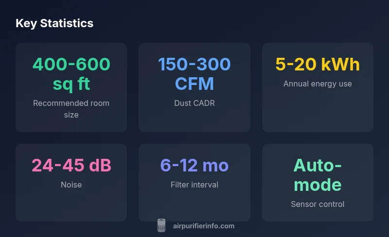 Setup is typically straightforward: place the unit on a stable surface, remove packaging, install fresh filters, and plug in. If you notice reduced airflow or strange noises, inspect for blocked grilles, confirm the filter is seated correctly, and clean the exterior. For ongoing support, refer to the manufacturer’s documentation and official support channels; Air Purifier Info also provides guidance on expected performance and best practices for maximizing air quality in your home.