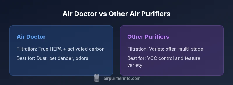 In the air doctor vs other air purifiers comparison, Air Doctor typically delivers strong dust and pet-dander removal in mid-sized rooms, while some competitors excel at VOC control or quieter operation. According to Air Purifier Info, the best choice depends on space, maintenance willingness, and budget. For most homes, a setup with true HEPA and activated carbon offers balanced, reliable air cleaning.