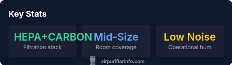 - HEPA + carbon filtration targets dust, odors, and VOCs
