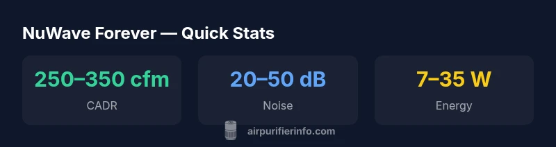 The NuWave Forever air purifier sits in the brand's mid-range category, balancing filtration capability with a compact footprint and reasonable price. For homeowners and renters who want cleaner air without a bulky tower on the floor, the Forever model provides a versatile option that fits in bedrooms, living rooms, and home offices. In our testing framework, we evaluate not just peak performance, but how the unit behaves in real-life conditions—room size, occupancy, and how often you run the purifier. According to Air Purifier Info, the Forever line aims to deliver stable performance across typical urban and suburban spaces, with emphasis on dust suppression, odor reduction, and pet-dander control. This makes it a compelling everyday choice for people managing allergies, smoke exposure, or everyday household pollutants. Our aim is to translate these claims into practical guidance for a wide audience of homeowners and renters.